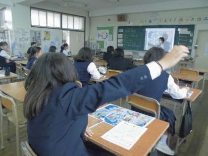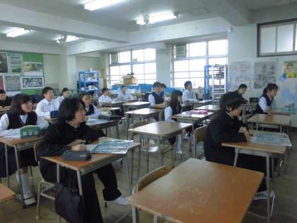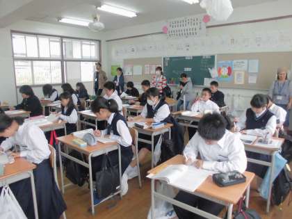 1年2組は美術と国語の授業でした。美術の鑑賞ではいろんな意見が出て、そんな見方もあるんだなあと、とても感心させられました。