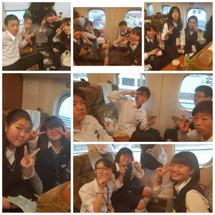 新幹線の中はみんな笑顔で楽しんでます。