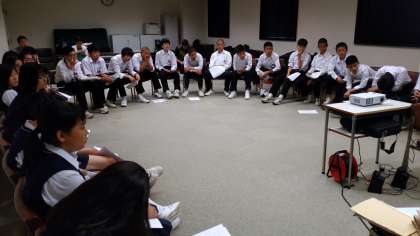 被爆者の方からの講話を生徒達は真剣に聞いています。