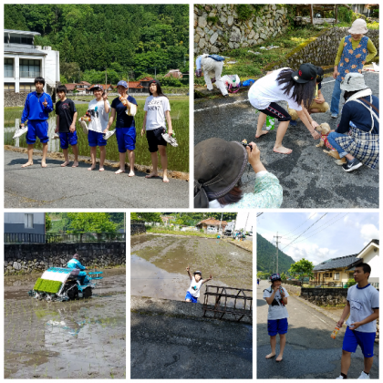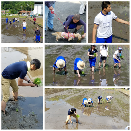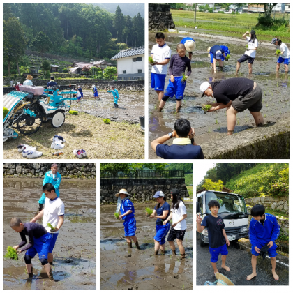 女子5班、男子2班、男子10班の合同田植えの様子です。