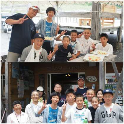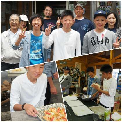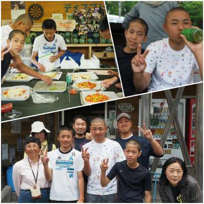 ここは2班合同で、恐羅漢スキー場ジップラインを満喫した後、手作りピザでお昼を楽しんでいました。