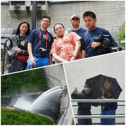 安芸太田町の名物でもある温井ダムの放流に多くのグループが参加していました。このグループももちろん参加。みんな舞い上がる水しぶきでベチャベチャです!