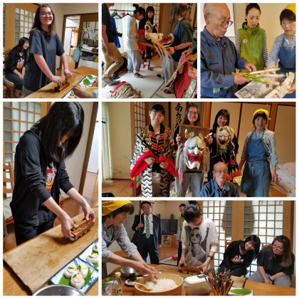 このお家は神楽の衣装やお面があって着せていただきました。神楽に興味があったので大喜びです。