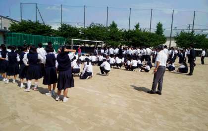 水上消防署から消防士の方に来ていただいて、指導をうけながら、