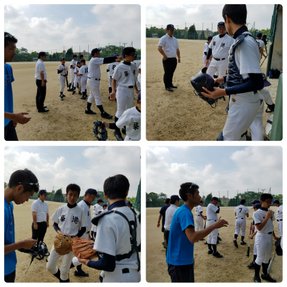 7月8日、桃山台市民グラウンドで野球部の公式戦がいよい始まります。まずは道具の、チェックです。