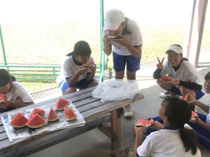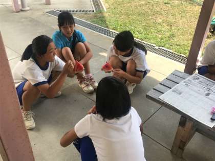 今日はお昼休みに地域の方に頂いた大きなスイカを