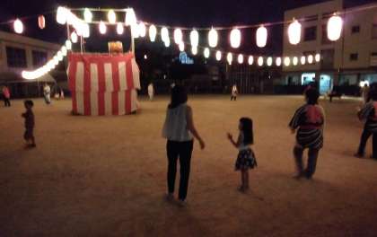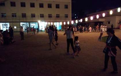 今日、明日と港晴小学校のグランドで盆おどり大会が開催されています。