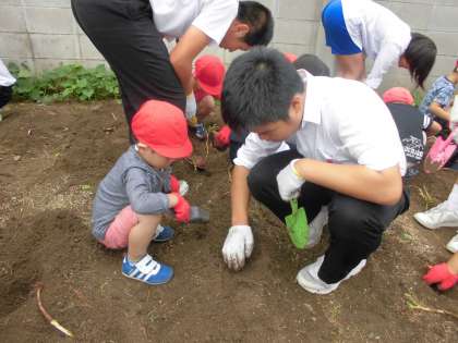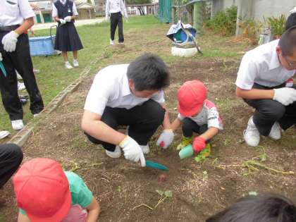 まるでパパ?男子は少し戸惑いながらも、いろいろと教えていました。