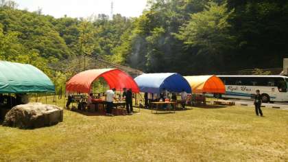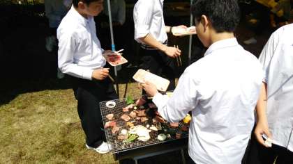 昼食会場にてみんなでバーベキューをしました。天気にも恵まれてほんといい気持ちです!