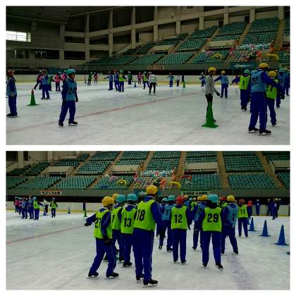 認定テスト種目を直前に講習(1枚目の写真)した後、1組から順番に出席番号順にひとりずつ滑りました。