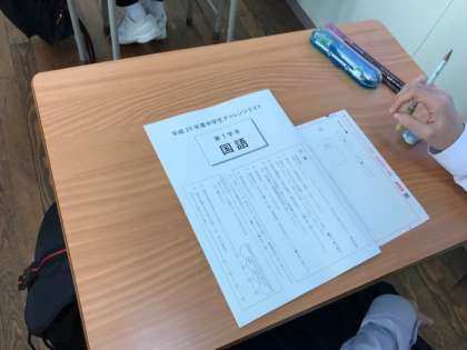 1年生は、国語・数学・英語の3教科、2年生は国語・社会・数学・理科・英語の5教科です。このチャレンジテストは大阪府の中学1年生、2年生全員が受験しています。みんな真剣です。