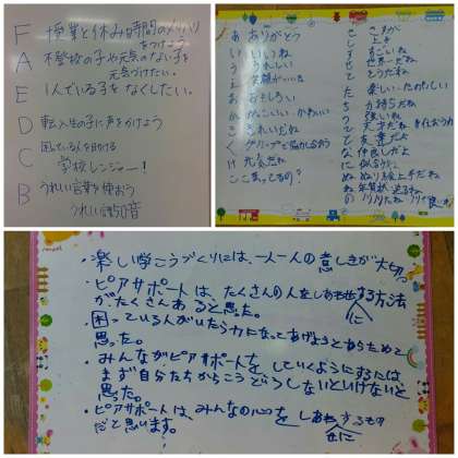 発表後は、会場のみんなで出てきたアイデアを共有し、これからの学校生活や家庭、地域にも役立つ行動をとることができるよう全体シェアして、閉会しました。