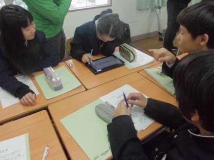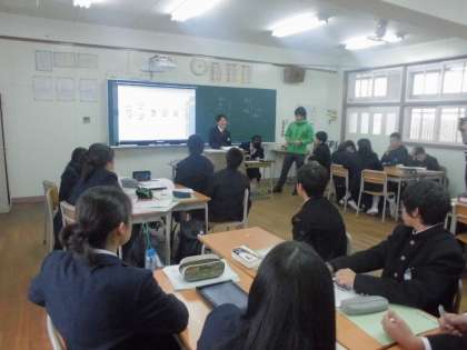 1月17日(水)の6限目、1年生は進路学習をしました。今回は1回目ということで、将来の仕事選択にむけて『生活するうえで大切なものって何だろう?』というテーマで話し合いをしました。タブレットを使って班で意見をまとめ、プロジェクターを使ってクラスで発表をします。大きな声でしっかりと発表ができました。