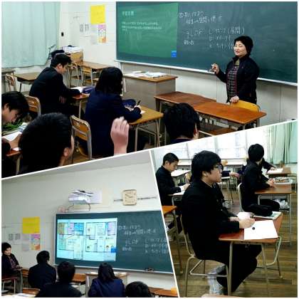 平成30(2018)年1月22日(月)、英語科と家庭科の校内研究授業が3年2組で行われました。
