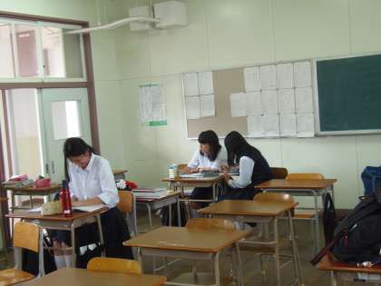 1年生は多目的教室、2年生は図書室、3年生は教室で、ボランティアの保護者や大学生のみなさんの協力で、それぞれ自学自習をしています。