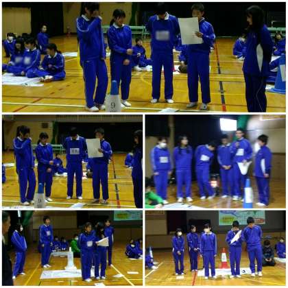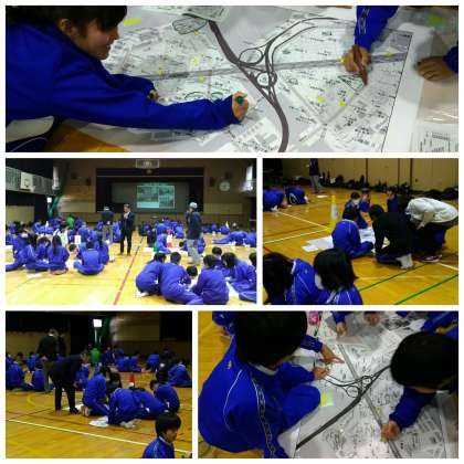 その後、各班での図上訓練!校区内で、災害の強みとなる施設や場所を確認し、印を付けたあと、各班で話し合い、発表しました。