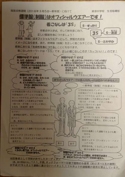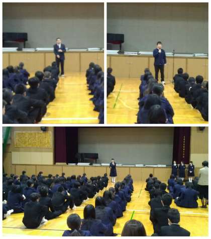 生徒会長から、卒業式に向けて3年生だけでなく、「1,2年生も日常生活の再点検をしましましょう!」という呼びかけがありました。