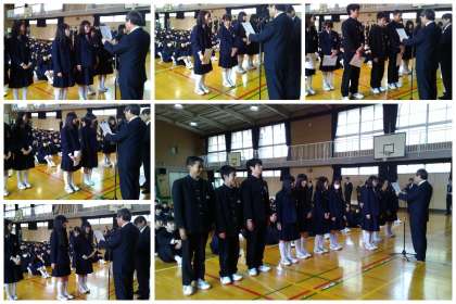 始業式の後、3月29日(木)に行われた「アフレルスプリングカップ大阪大会」に出場した時の賞状を校長先生から紹介と伝達がありました。