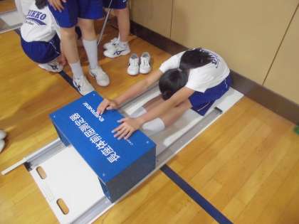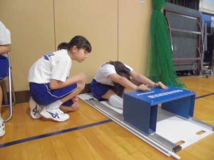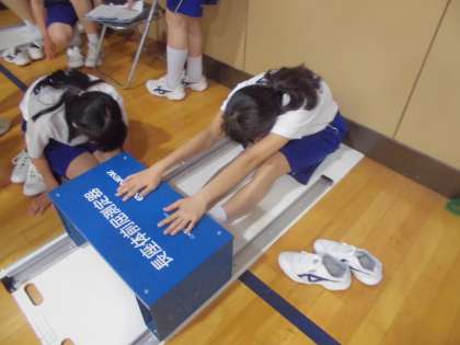 女子は同時進行で、新体力テストの残り、長座体前屈もしました。体の柔らかい人が多く、とてもびっくりしました。