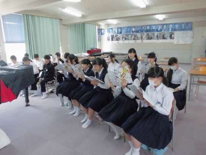 1組の音楽の授業の様子です。2年生は女子がとても元気よく、合唱でも男子を引っぱってくれます。