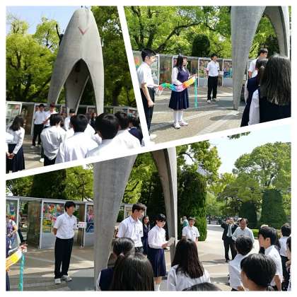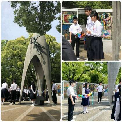 原爆の子の像の前では、委員長会・生徒会による鎮魂セレモニーを行いました。