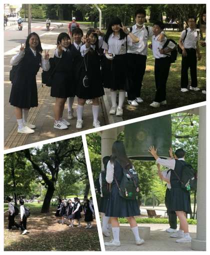 みんな、時間をしっかり守ってくれているので、たっぷりと散策の時間がとれました。事前に決めたルート以外に、先生から聞いた話で目的地を追加した班も。それぞれの思いをもちながら、晴天の中、平和の大切さを感じながら散策できました。