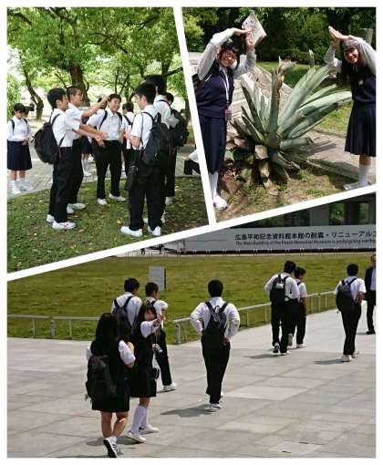 昼食にお弁当を食べた後は、各クラスの生活班ごとに分かれて平和記念公園内を散策。事前に各班で決めたルートにそって色々な場所を回りました。