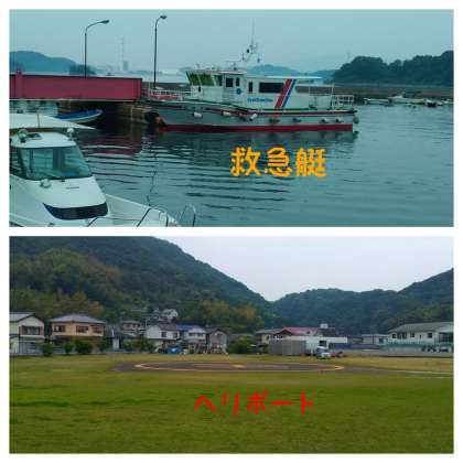 何かあったら、救急車から救急艇、またはヘリコプターで病院へ運びます。