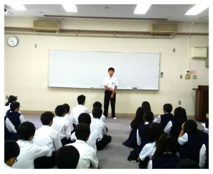 最近話題のアメフトにおけるプレーから、スポーツを行う意味についてを考えました。「勝ち負け」ではない尊いものを見つけること、そしてスポーツに限らず受験においてもゴールは入学だけではなく、さらに未来をイメージすることの大切さをお話されました。