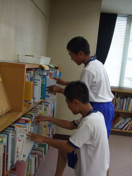 港図書館の様子です。大量の本を整理して、てんてこまいでした。