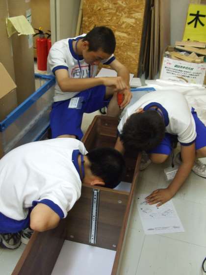 コーナンでは、不慣れな工具を使って商品陳列棚を製作中です。