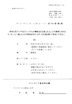 (2)ナンづくり(カレー)参加者募集 6/29(申し込み〆切 6/21)