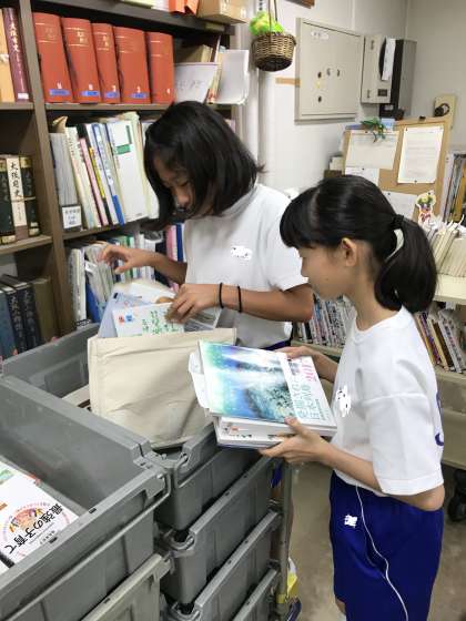 港図書館です。本の貸し出し業務や、本の返却作業、シール張りや梱包作業、たくさんの仕事を経験することができました。貸し出し作業は間違えないかと、とても緊張しました。疲れたけど楽しい2日間でした。