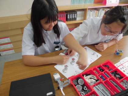 写真は2人1組でロボットを組み立てているところです。協力して設計図を見ながら、とても楽しそうに作っていました。中学校でこんな授業を受けられるなんて…うらやましいかぎりです。
