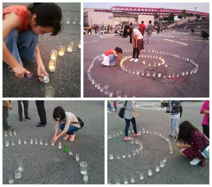 夕方から関係者の方々がご準備される中、何人かの生徒もキャンドルを並べたり灯したりお手伝いをしてくれました。