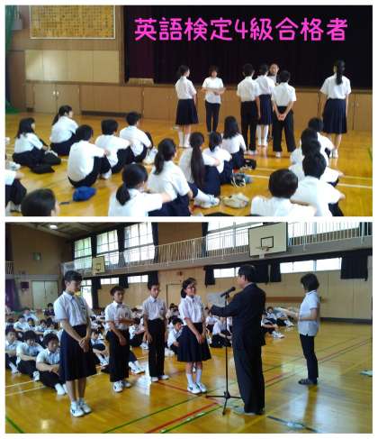 まず、英語検定4級の合格者5人に合格証書が渡されました。