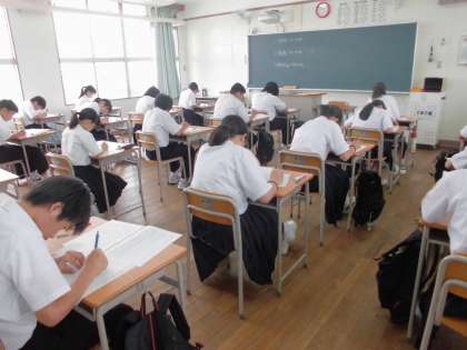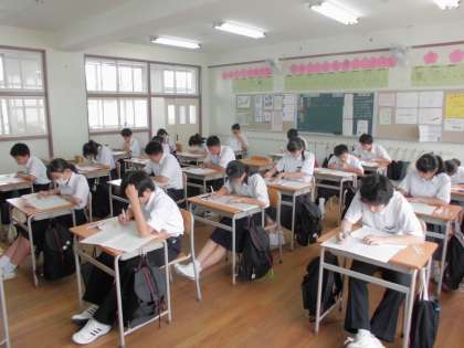 期末テスト2日目、国語のテストの様子です。みんな勉強した成果をだそうと、真剣にがんばっています。頑張れ!