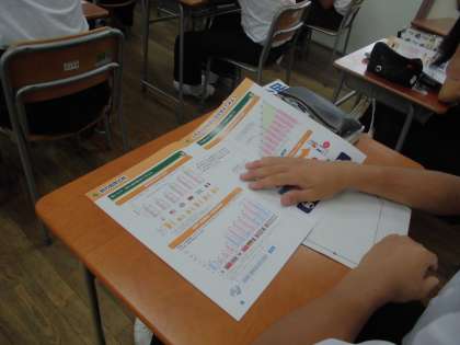 生徒たちにとっての身近な税といえば消費税ですが、それだけではない、多くの税の種類があること、税が何に使われているかなどがわかったと、充実した1時間でした。