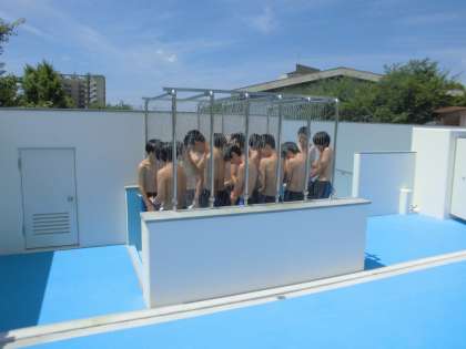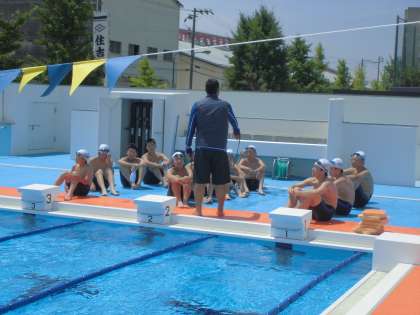 7月11日水曜日の3限目、2年生の体育の授業の様子です。水泳の授業では気をつけなければならないことがたくさんあります。入念に体操とシャワーをして、先生の指示をしっかりと聞けていました。