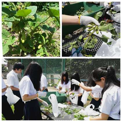 3限目、3-1Bの技術の授業で、これまで愛情込めて育てた枝豆を収穫しました。