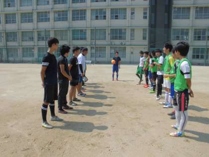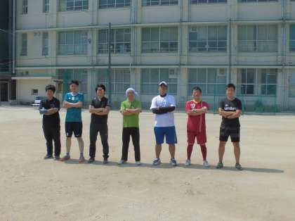 終業式の午後、先生チーム7名がサッカー部に試合を申し込みました。23歳から61歳の有志7名が挑戦します。まだまだ若いもんには負けません!