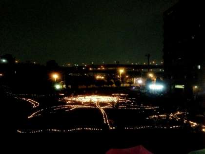 毎年恒例のキャンドルナイトの様子です。5時半くらいからみんな集まってキャンドルスタンドを並べろうそくに明かりを灯していきます。7時半時点での様子です。