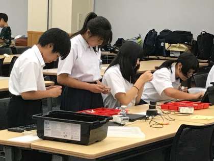 8月4日(土)WRO JAPAN 2018 ロボットコンテスト 中大阪予選会「ミドル部門」に本校から4チーム9名が参加しました。このコンテストは世界中で20万人が参加する大きな大会です。参加者は技術の授業で参加を募りました。いろいろな部活から集まっているので、練習に苦労しました。ロボットの組み立てから始まり、試走をします。