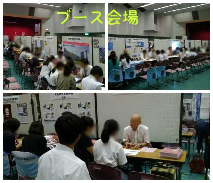 1階区民ホールではブース形式37校、2階松竹の間ではプレゼン形式17校の説明会がありました。