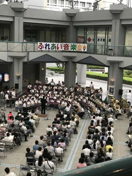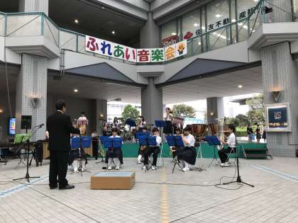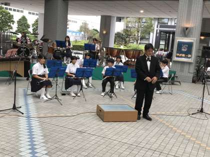 9月9日(日)13:30より大阪ベイタワー アトリウム2階で港区ふれあい音楽会が開催されました。本校から吹奏楽部が参加し、庄司先生の指揮で、「ミッション・インポッシブルのテーマ」「ルパン三世のテーマ’78」「紅(くれない)」の3曲の演奏がありました。手拍子をしてくれているお客様もいました。