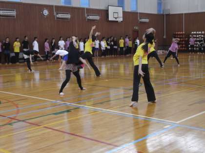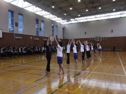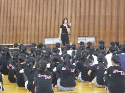 大阪市のダンス部約100名の生徒が集まり、プロのダンサーでありコレオグラファー(振付家)の飯田陽子先生からダンスの基本の動き方を丁寧に教えて頂きました。
