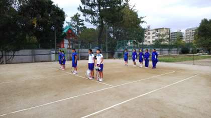 テニス部です。今日は築港中学校で、関西大学北陽中学校さんとの団体戦がありました。結果はストレート負けでしたが、みんなのびのびとプレーできたように思います。特に1年生は、デビュー戦にもかかわらず、ナイスショットを連発していました。今後の活躍に期待しています。応援に来てくださった保護者の皆さま、ありがとうございました。