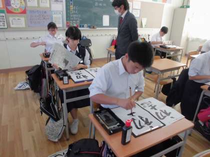 2年生の書写の授業の様子です。忘れ物もなく、とっても静かな雰囲気で取り組んでいました。書写になると普段よりも姿勢が美しくなるのは不思議ですね。