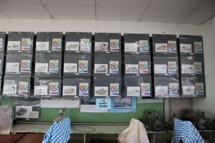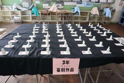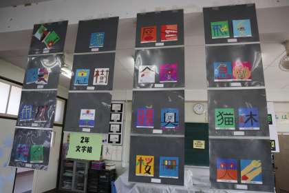2年生の文字絵、3年生の篆刻、1年生の靴の絵と混色練習です。