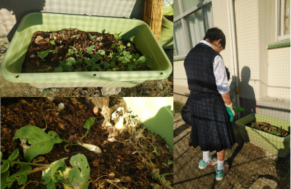 他にもカブやほうれん草も植えているので、これからの収穫が楽しみです。